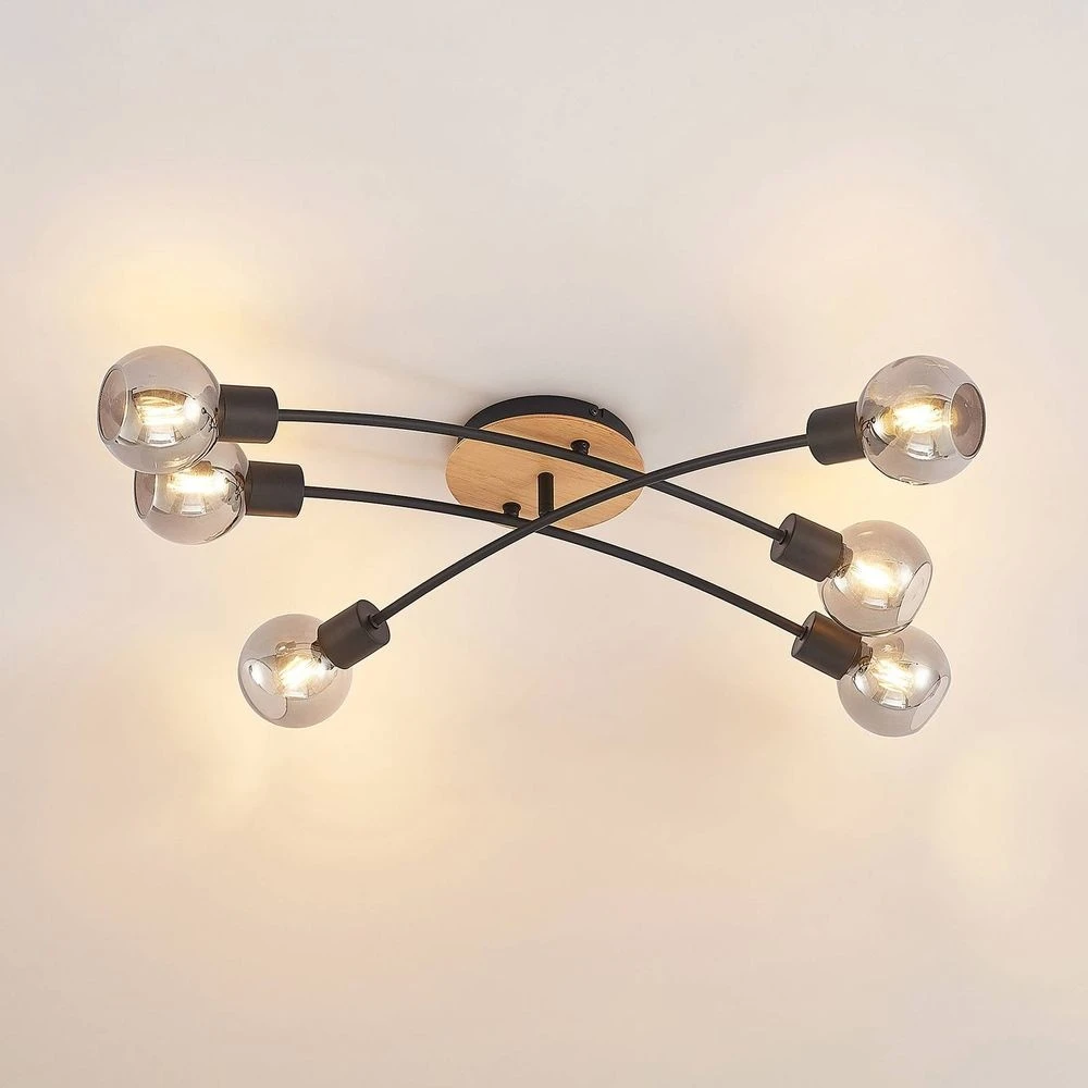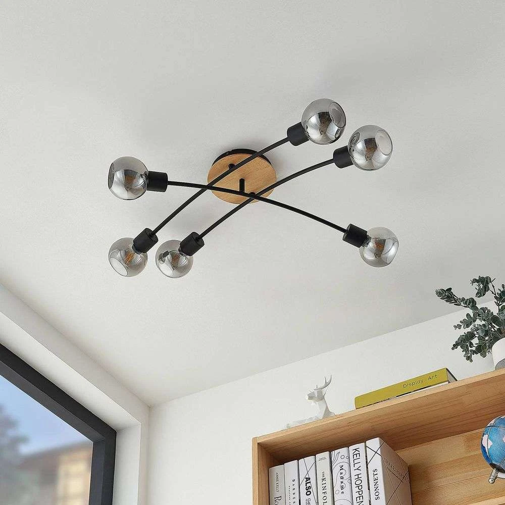 Eridia 6 Cross Plafondlamp Black/Wood – Lindby – Koop Online